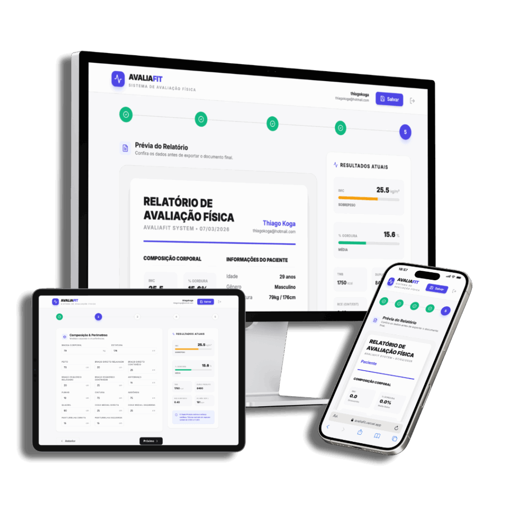 Se você é personal trainer, avaliador físico ou dono de academia e quer profissionalizar sua entrega, o AvaliaFit foi feito exatamente para você.