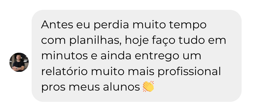 Gere avaliações e relatórios com padrão profissional que valorizam o seu trabalho como personal.